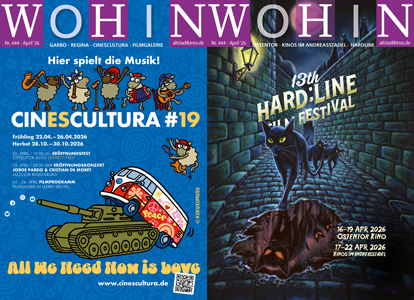 Wollen Sie eine Anzeige in unserem 'Wohin' schalten? Oder sollen unsere Besucher ihre Werbung auf der großen Leinwand bewundern? Kein Problem! Schicken sie uns doch eine E-Mail an achim-hofbauer(at)t-online.de und wir schicken ihnen umgehend unsere Mediadaten zu. |